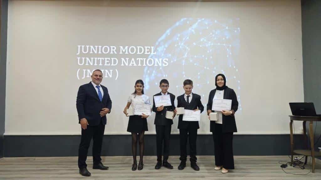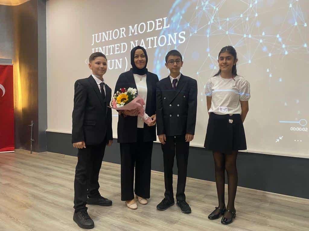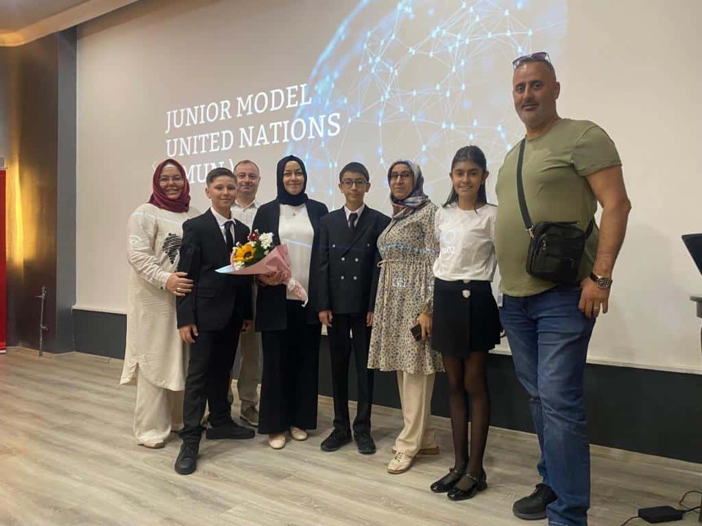 Mehmet Suphi Egemen Ortaokulu İngilizce öğretmenimiz Cumhuriyet KARADEMİR danışmanlığında 7. sınıf öğrencilerimizden Mümin Kerem KAPLAN, Muhammed Naci GÜNDÜ ve Beren DAĞISTANI’ nin yer aldığı JMUN( Junior Model United Nations) projesinin konferans günü 30.05.2025 tarihinde Manisa Öğretmenevi’nde, Manisa ilinden 7 ortaokulun katılımıyla gerçekleştirildi.